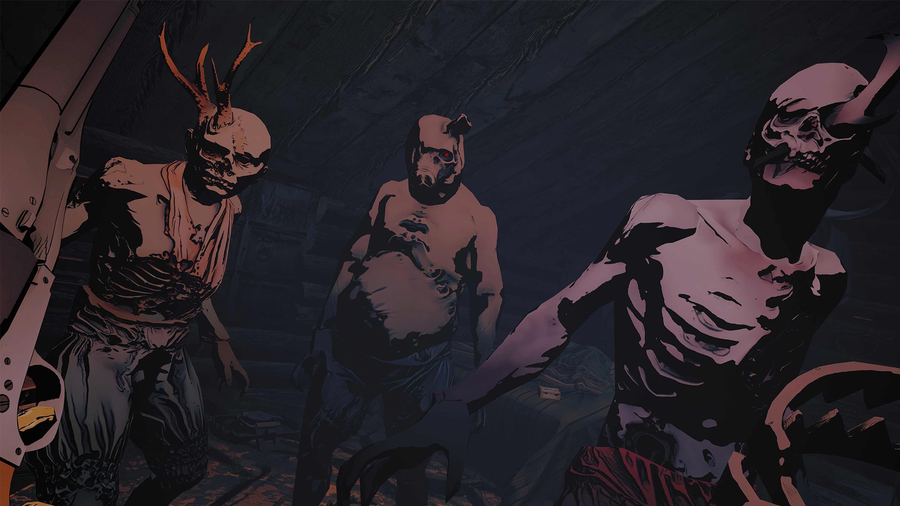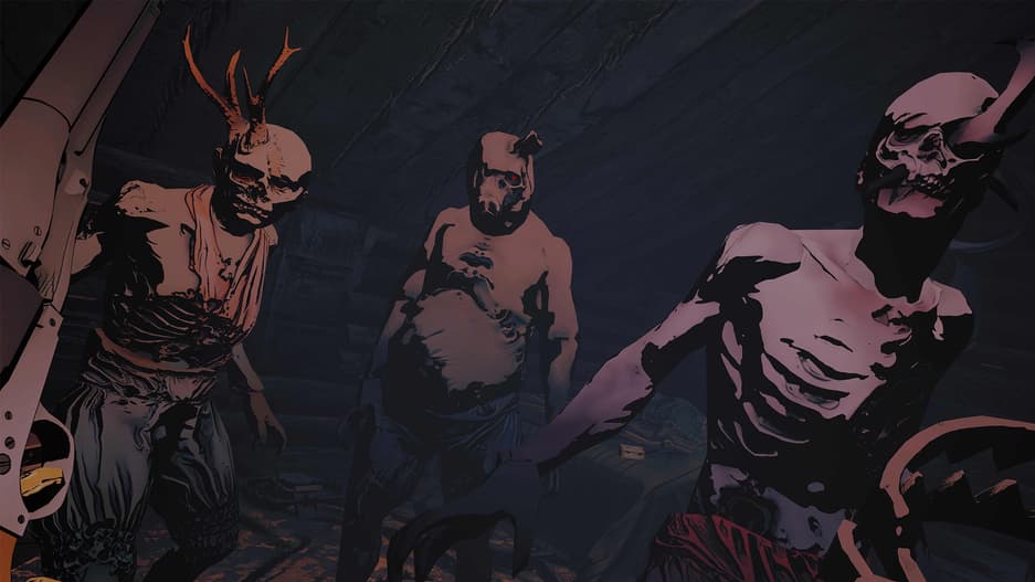 Lies Beneath оформлена в виде мрачного и кровавого комикса. Разработчики из Drifter не только выполнили абсолютно все текстуры в классической комиксовой рисовке, но также смоделировали все предметы и модели в соответствии с этой изобразительной формой. Графическая часть – это самая сильная сторона Lies Beneath. На протяжении всей 6-7-часовой кампании у вас редко будет возникать ощущение, что игра воспроизводится на старом железе Oculus Quest. Честное разрешение, минимальное наличие «лесенок», никаких угловатостей моделей и размытостей текстур. Движок прекрасно справляется со всеми задачами, умело распоряжаясь ресурсами VR-шлема.