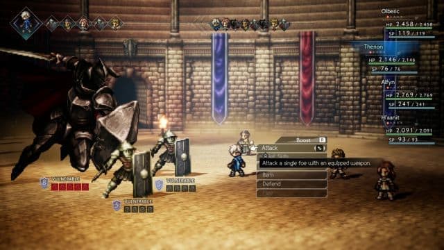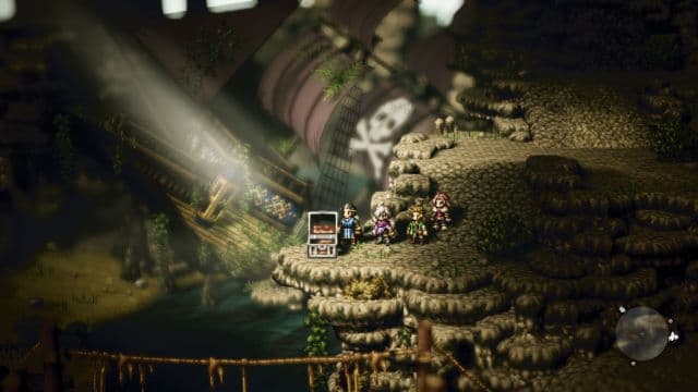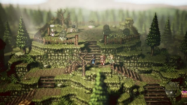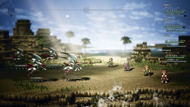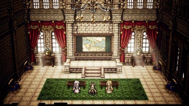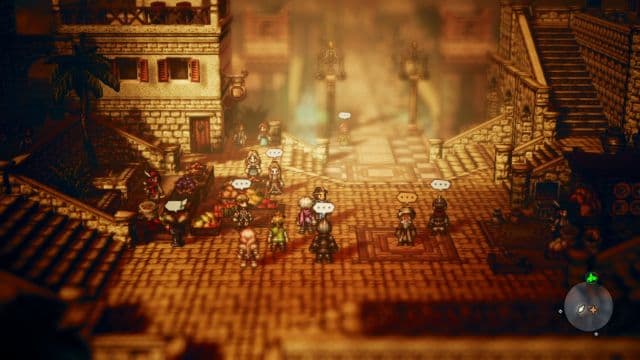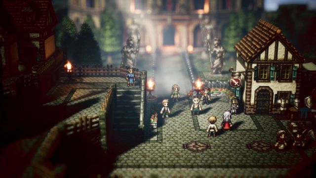 Кроме того, в Octopath Traveler нельзя просто определиться с любимчиками и двигаться к цели. Уже в третьей (из четырёх) главе в каждой кампании становится понятно, что без дополнительной прокачки отряд обречён на провал. У торговцев есть качественная экипировка, вор обчищает карманы граждан и вытаскивает оттуда острые клинки и броню, но одним из главных источников силы является гринд ради повышения уровня. Приготовьтесь нарезать круги по небольшим локациям и натыкаться на случайные битвы. Да, в этом вопросе игра с головой погружает в прошлое. Только внезапные драки! И это ещё не всё.