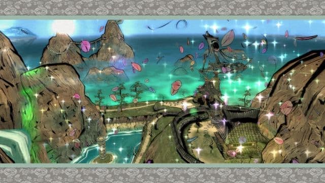 Локации, монстры и персонажи до сих пор впечатляют неповторимой стилистикой, а происходящее напоминает ожившее полотно японского мастера. Оно прекрасно обходится без передовых технологий. На логова древних чудищ, прилежно оформленные интерьеры домов и утопающие в цветах сакуры деревушки смотришь, затаив дыхание. Удовольствию не мешают полупустые поля с плоскими текстурами. Последние теперь заметны особенного хорошо. Компромиссы и частые загрузки не в силах затмить искусную работу. С нетерпением ждёшь шанса заглянуть в неизведанные уголки и познакомиться с божествами, которые удивляют странным внешним видом.