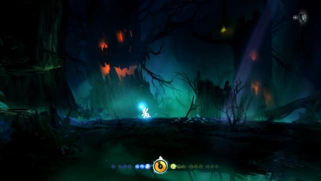 Хотя обязательные сражения со злюками тут редкость, они не воспринимаются частью декораций, плюются в Ори кислотой, пикируют с высоты, отлично справляются с ролью живой преграды, мешающей допрыгнуть до цели. Стоит упустить из виду безобидную на вид зверушку, и расплата настигает мгновенно.