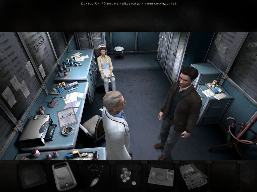 Чем ближе к развязке, тем серьезнее зреет неприятное ощущение, что проект бросили на середине, забыв про мелкие нестыковки и потенциал завязанного в тугой узел сюжета. После второго из пяти дней расследования события теряют глубинный смысл, динамика испаряется, интрига превращается в теорию заговора не первой свежести, а на поверхность всплывают все притопленные углы, нестыковки и шероховатости. Особенно это заметно в поведении персонажей. Непонятно выглядит терпение портье и бармена, дожидающихся уплаты по счетам, сотрудники спецслужб слишком медленно и непрофессионально реагируют на ретивость и целеустремленность доктора, а финальная точка вообще высосана из пальца. Действия с предметами очевидны и примитивны, но работа с подбором правильного аудиофайла с показаниями пациентов требует недюжинного терпения. Отдельное «фе» отечественной локализации, где используется повторяющаяся лексика (рекорд у «лудильщика душ» – почти 40 раз), а реплики не соответствуют эмоциональному состоянию главного героя и остальных персонажей.