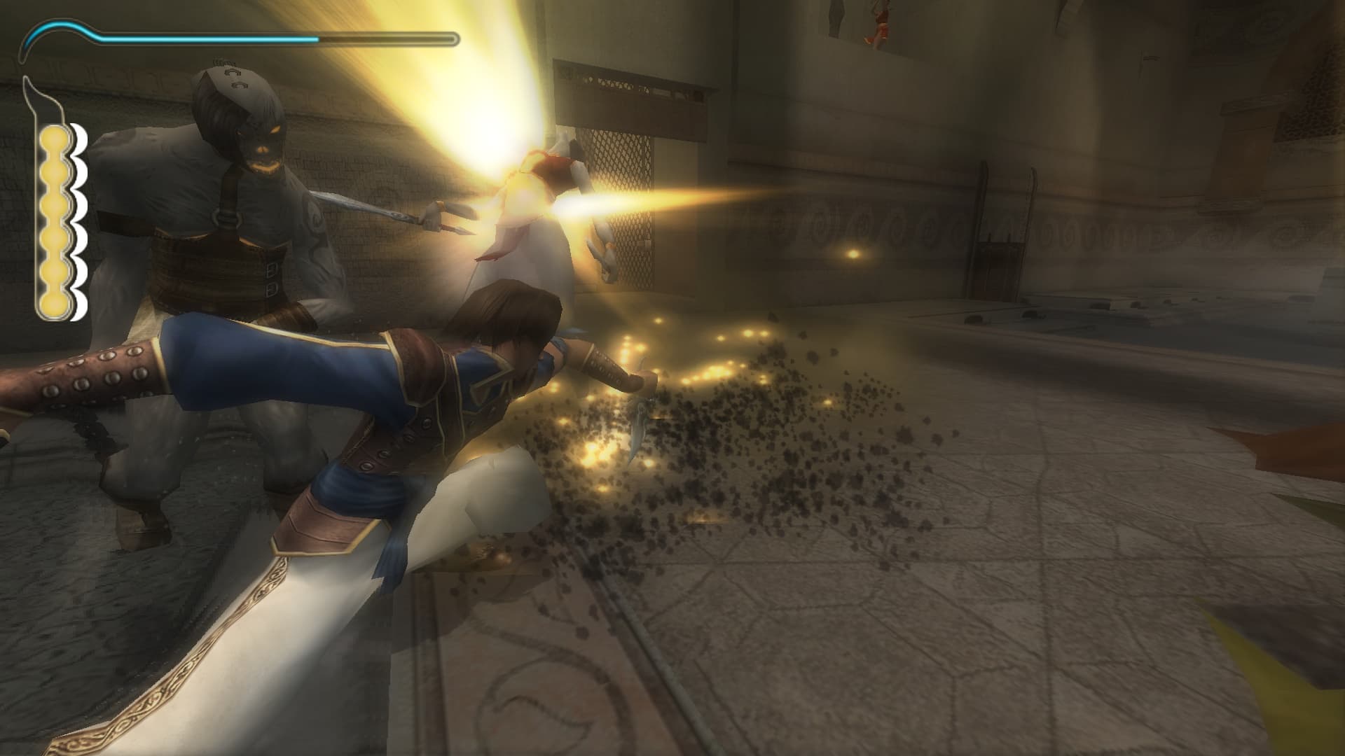 Также хочется отметить реализацию точек сохранения. Каждая из них выглядит как поток Песка Времени, в который входит протагонист, и там он видит часть ближайшего будущего — небольшие подсказки, куда идти и что в принципе делать дальше. В некоторых моментах это спасает, ведь кроме этих самых «видений» в игре больше нет никаких других меток, указывающих путь.