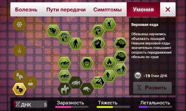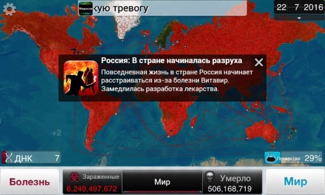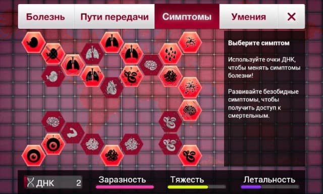 За прохождения уровней дарят элементы генного кода. Им можно модифицировать знакомую уже заразу: ускорить выработку очков ДНК, упростить распространение и адаптировать к определнным странам. И снова в бой, стараясь уничтожить человечество на максимальном уровне сложности, где все моют руки, а врачи, вредины этакие, работают ежедневно.