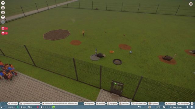 С другой стороны, возможности игры кажутся безграничными. Манипуляции с инструментами превратят первые неуклюжие проекты в строгие, привлекательные, тщательно распланированные и систематизированные парковые пространства. Однако при этом придётся побороться с неэргономичным интерфейсом. Вы начнёте создавать подземные дороги, скроете будки сотрудников, генераторы электроэнергии и другие важные элементы надлежащего функционирования, так как они не нравятся посетителям. Поймёте, что реальный источник дохода — не цена на входной билет, а ящики для пожертвований. Затем выйдете на высоту и запустите транспорт по монорельсу и подвесным платформам. Но самое ужасное, что наслаждаться результатом будет некогда! Управление огромным зоопарком требует пристального внимания и микроконтроля. Животные могут сбегать, драться, травмировать друг друга, заболевать, умирать, появятся демонстранты с плакатами, которые будут требовать освободить пленников вольеров, объекты будут ломаться и так далее.