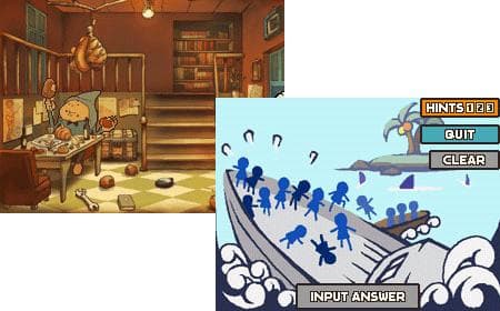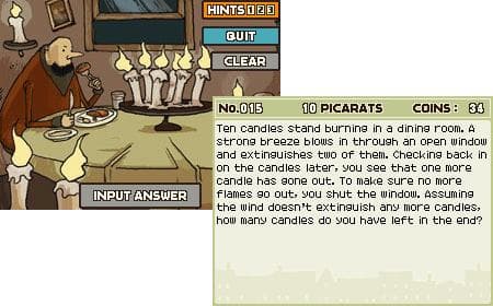 Разнообразие головоломок зашкаливает. Тут вам и спичечные метаморфозы, и арифметика, и логические упражнения. Любители классики оценят шахматные задачи про ферзей или перестановку шариков местами с помощью узкого прохода. Уклоняться от обязанностей мыслителя у игрока не выйдет. Чтобы завершить игру, от него потребуется около восьмидесяти решённых задач. Но если захочется добавки, то профессор Лейтон с радостью отыщет вам пару-тройку проблем. Пятнадцать дополнительных головоломок ожидают своего чемпиона в копилке бонусов. Все они пугающе сложны, и заставляют мозг работать почти на износ. Мало? Что ж, для ненасытных гурманов организована еженедельная доставка задач через Wi-Fi. Скупердяи вздыхают спокойно: услуги виртуального курьера абсолютно бесплатны.