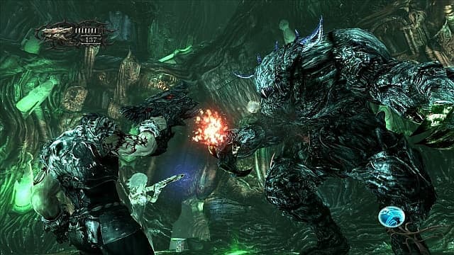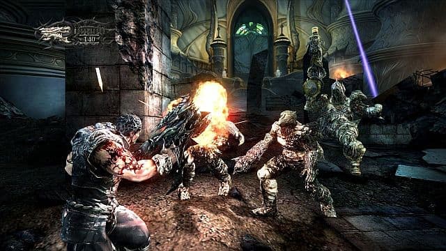 Вместо ожидаемого эффекта с мощным взрывом и уничтожением всего живого, слышится неубедительное «пых», и только легкая искорка отлетает от брони вражины.На этом несуразности не заканчиваются. Достаточно перейти в режим стрельбы «с планки» как на экране возникает странная загогулина. Не надо пугаться – такой здесь прицел у некоторых пушек. Понять, где в этой эльфийской каракуле центр, очень сложно. Приходится водить этой фигурой по телу врага, ожидая, когда она окрасится в красный цвет. Дополняет этот парад идиотских решений смерть неприятелей. Гады просто лопаются, словно презервативы, начиненные жидким дерьмом, оставляя после себя только лужу на полу.Несмотря на тупоголовых противников, игру нельзя назвать простой. Попытавшись изобразить примерный клон Gears of War в первых уровнях, разработчики хлопнули себя по лбу с возгласом «Надо добавлять аттракционы!». Ох, зря. Твари начинают появляться из воздуха со всех сторон. А совершать быстрые манёвры и своевременно ликвидировать монстров при таком неповоротливом герое и смешном оружии крайне затруднительно.