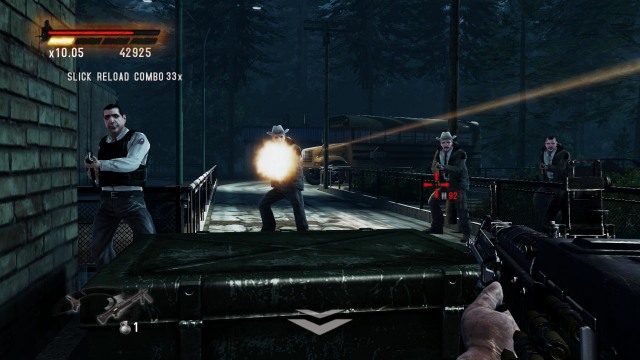 В определенных ситуациях герой останавливается, и со всех сторон, словно тараканы, выползают солдаты. От шквального огня можно прятаться за укрытиями. Эти сражения превращаются в череду действий «высунулся-выстрелил-спрятался для перезарядки». Из-за этого темп игры падает, убивать толпы супостатов в подобном формате быстро наскучивает, но авторы и не думают избавляться от неудачного приема.