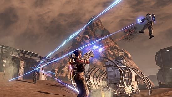 Именно в такой обстановке оказывается наш подопечный – инженер Алек Мэйсон. Он прибыл на Марс, чтобы работать, а не сражаться за свободу, но в его мирные планы вмешивается организация Earth Defense Force (EDF) – блюстители правопорядка. Эти ребята убивают брата главного героя и собираются прикончить его самого, но повстанцы спасают работягу. Тот, естественно, вступает в партизанские ряды Red Faction и берет в руки оружие, чтобы очистить красную землю от (каламбур!) землян. После резвого старта история отправляется в глубокую спячку и превращается в последовательность: «Мы изгнали EDF из [подставить название сектора], но наша борьба ещё не окончена!». Однополчане героя – шаблонные бесстрашные борцы за независимость. Предводители армии с планеты Земля и вовсе появляются на экране крайне редко, из-за чего оккупационные войска выглядят бесчеловечной, злобной, но какой-то безликой силой. Поэтому, интриги в повествовании нет и в помине, есть только парочка заурядных штампов о супер-оружии, способном решить ход конфликта.