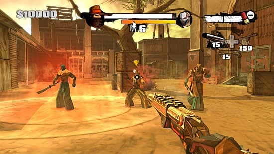 Второй «висельник», тянущий игру вниз, – дизайн локаций. Каждая глава предстает перед нами в виде небольшого района, нарезанного на маленькие кусочки. Видели одну – значит, видели все. Набор элементов на таких кусочках одинаковый и не меняется до конца игры: жетоны и звезды шерифов, горящие грузовики и радиолокационные вышки, рубильники и сейфы, барные стойки и складские помещения, схроны с оружием, а также десятки ящиков и бочек. Мультяшный стиль не прикрывает нищету яркими красками, но выгораживает. Такое ощущение, что большую часть локаций создавали простой комбинацией клавиш Ctrl+C и Ctrl+V. В памяти осядут разве что движущийся поезд, разрушенный храм, крыши ночного города с пролетающими ниндзя да залитый солнцем заброшенный поселок золотоискателей.
