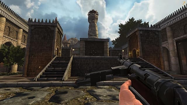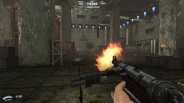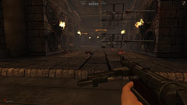 Ремейк изо всех сил старается походить на сверхскоростную классику. Фрицы материализуются из воздуха, стоит герою переступить триггер. Их деятельность ограничивается хаотичной беготнёй и демонстрацией «выдающихся» умений вроде кувырка. Протагонист хватает пистолеты или автомат с бесконечными патронами и расстреливает всех на своем пути. Показушная жестокость и разлетающиеся куски тел приходятся ко двору, в смысле неплохо декорируют серые, голые нацистские дворики.