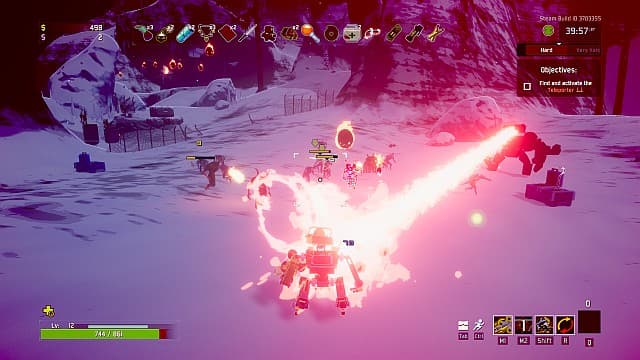 Время — главный враг в этой игре. Каждые пять минут уровень сложности подскакивает, сразу же увеличивается количество и разнообразие врагов, появляются новые виды, мини-боссы. Портальные боссы становятся сложнее. Поэтому, чтобы дойти до финального уровня, требуется очень-очень быстро действовать. Надо как можно быстрее найти портал, победить врагов, открыть по ходу сундуки и нырнуть в следующий мир, с тревогой посматривая на тикающий таймер.