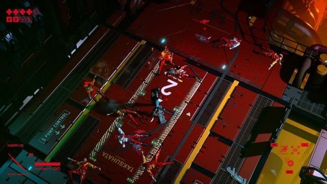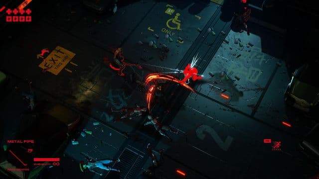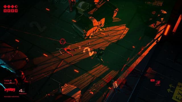 Герой не только превращает врагов в решето, но и размахивает куском трубы, разбрасывая бандитов и охранников в разные стороны под аккомпанемент кровавых брызг. Вершитель правосудия совершает молниеносные рывки, что позволяет ему оставаться невредимым. Перед уклонением удаётся замедлить время и построить маршрут из нескольких точек, а потом мгновенно пролететь от одного места до другого. Нельзя игнорировать и трофейные «пушки», катаны и подожжённые дубины. Запас патронов и прочности у дополнительного оружия ограничен, но они помогают быстрее разобраться с угрозой. При этом в нашем распоряжении оказываются бластеры, замораживающие людей, ружья с автоматами и пулемёты с огнемётами.