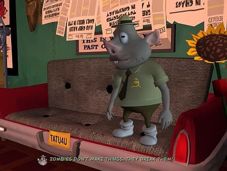 Зомби, заполонившие город, – это мелкие неприятности, на которые не стоит обращать внимания. Ну, ходит себе по улице что-то зеленое и бессловесное, так в полиции еще и не на таких насмотришься. Подбрось им из машины новый диск с настройками Интернет-провайдера или положи на тарелочку лакомый кусочек мозга – и все, можно не переживать за их досуг и настроение. Мычащая зомби-массовка с забавными мордашками практически ни при чем, да и контактирует с героями от силы раза два. Другое дело таинственный ди-джей разухабистой рейв-дискотеки в замке неподалеку от Штутгарта, производящей новых мертвецов с впечатляющей скоростью. Эмо-вампир Юрген отодвинул в сторону коллег по кадру. Всерьез это хныкающее-сюсюкающее инфантильное существо не воспринимаешь даже в момент решающей схватки или казни. Природная шепелявость из-за клыков и немецкий акцент только усиливают игру новичка.