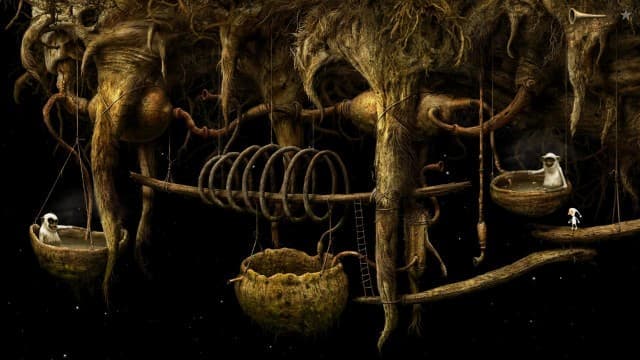 Хотя в Samorost 3 есть некое подобие сюжета и даже злодей, проект увлекает отнюдь не динамичной историей. Это потрясающий вояж по, казалось бы, крохотным мирам, которые производят впечатление настоящих вселенных со своими правилами, бытом и необъяснимыми явлениями. Гигантские насекомые, спящая черепаха или своеобразная версия муравьеда, типы в одеждах монахов или маленькие черные человечки — не перестаешь восторгаться фантазией создателей. Небесные тела напоминают то корнеплод, то бесформенное нечто с отростками непонятного предназначения.