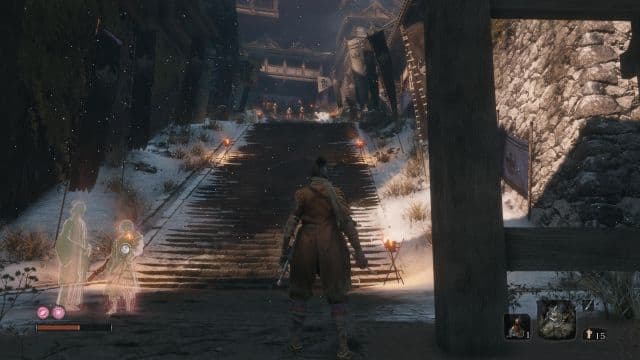Зато часть истории пропустить проблематично. Синоби немногословен, но готов пообщаться с несколькими дружелюбно настроенными к нему людьми. Рассказ о преданности и бессмертии не хватает звёзд с неба, но и не лишён отлично поставленных и трогательных сцен. Повествование в Sekiro является прекрасным доказательством того, что для демонстрации безграничной преданности или ненависти необязательны долгие разговоры. Хватит и бесконечно крутых героев. Информацию о вселенной можно почерпнуть из описания артефактов, бесед с персонажами за рюмкой саке и даже подслушав разговоры патрульных.