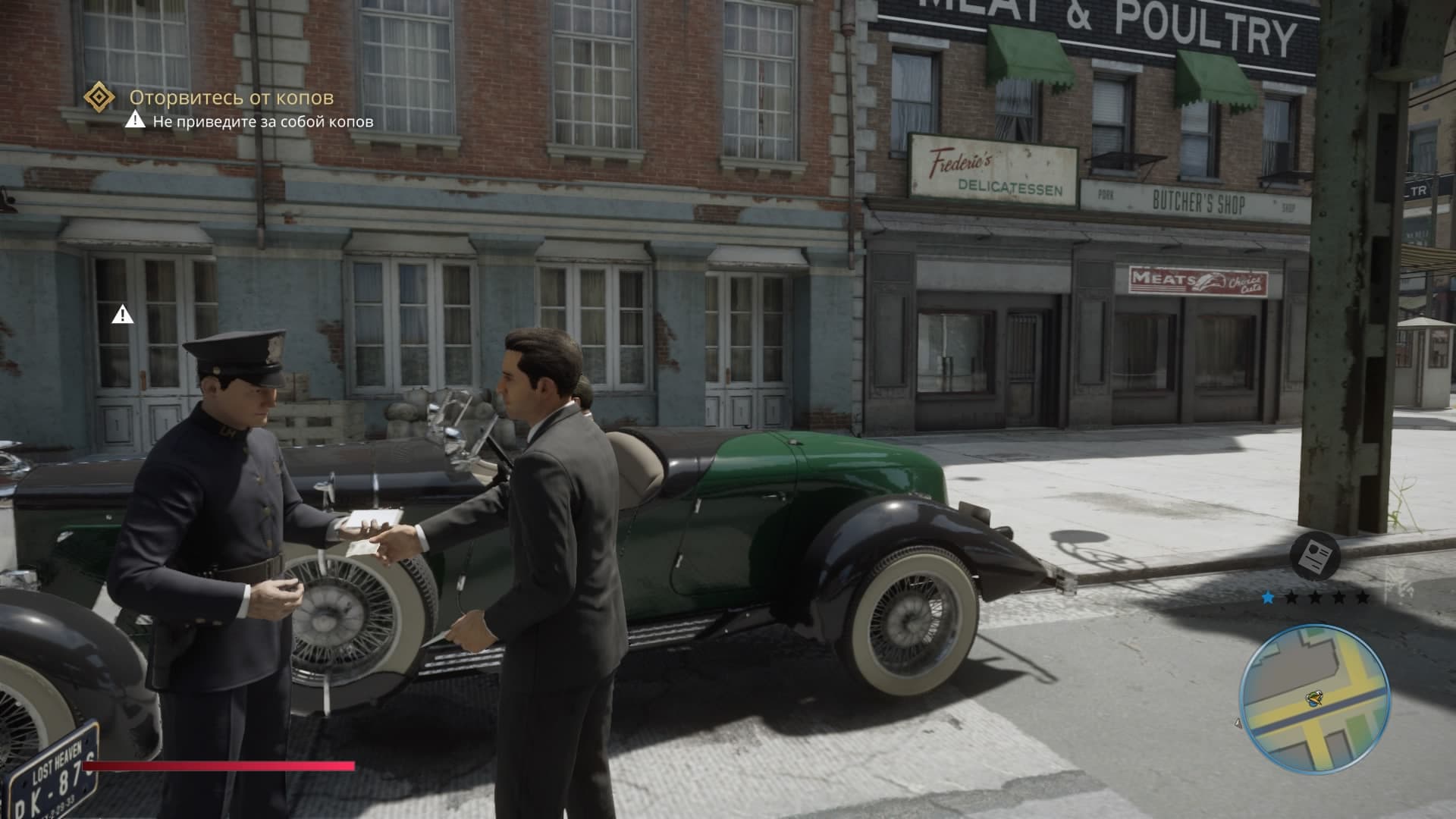 Больше всего порадовала взятая из Mafia 3 механика стрельбы. Главный герой, конечно же, на войне не был и стрелять, как Линкольн Клей, не может – прицел то и дело норовит немного съехать с головы врага. Чувствуется вес героя, а отдача от оружия даёт адекватный контроль, а не как в оригинале, где стрельба из автомата Томпсона была игрой в игре.