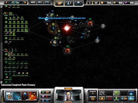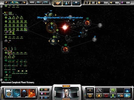 Если планеты отвечают за большую часть экономики, то на орбите озабочены вопросами технологического и военного превосходства. Отстроенный флот достаточно объединить рамкой и отправить на разборки к ближайшей системе – автоматика сама подберет эффективную дистанцию атаки и применит специальные способности кораблей. Игроку остается лишь внимательно подбирать состав эскадрилий из тяжелых линкоров, крейсеров и фрегатов. Неправильно вложенные средства и ресурсы распылят на атомы в первом же бою. Гордость каждой расы – гигантские корабли, в одиночку способные перемолоть десяток легких эсминцев или захватить очередную планету. Тяжеловесы хороши не только огненной мощью. Нередко на борту сосредоточено одно или два звена юрких истребителей, а также уникальное оружие – ракеты с ядерными боеголовками, ионные лучи, парализаторы, заряды антиматерии, сеющий панику психопередатчик и т.д. Комбинация из пяти-шести спецспособностей как правило становится залогом относительно бескровной победы.