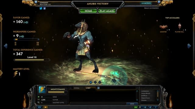 Похожим на League of Legends игру делает и ваш аккаунт, уровни которого понемногу растут. Вот только эти уровни ничего не дают, кроме денег. После сражения добавляются поклонники для бога, за которого вы играли. И снова практического применения этим цифрам нет. Просто смотришь и знаешь, за кого ваш напарник или оппонент играет больше всего. По достижении максимального уровня открывается доступ к ранговым матчам, где каждая победа и поражение имеют значение для вашего аккаунта.