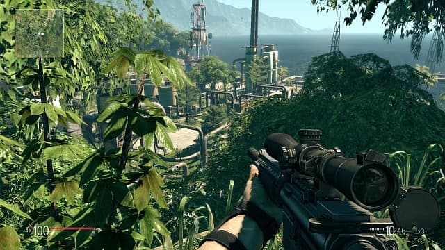 Нет, история не посвящена побегу. В сюжете имеется множество «лихих поворотов»: спасение секретного агента, предательство, партизаны, особо опасный минерал, добываемый в здешних шахтах, поиск разведданных про оружие массового уничтожения. Для полной картины не достает только пришествия хищников, в остальном-то все прилежно стырено из боевиков. Кажется, что после кривляний и наигранности сцен должно начаться то, что обычно начинается в немецких фильмах для взрослых после фразы: «Здраствуйтэ, я ваш сантэхник». Хотя в какой-то степени именно это и начинается.Одной из отличительных особенностей игры должна была стать необходимость рассчитывать траекторию полёта пули. В Sniper: Ghost Warrior действительно надо принимать во внимание направление ветра и расстояние до цели, иначе герой никого не убьёт. Такой процесс требует времени. Однако Тайлер то и дело оказывается перед обстоятельствами, когда работать заставляют на износ. Не успели убрать вражеского снайпера, и миссия провалена. Не «перещёлкали» все цели за пару секунд – последняя контрольная точка вас заждалась.