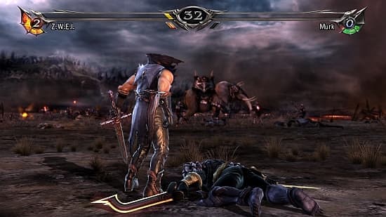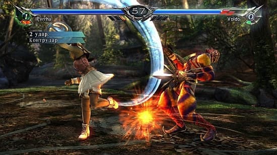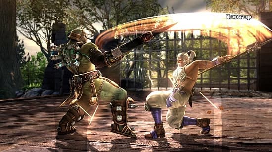 Энергию для Critical Edge разрешено также тратить на усиление обычных атак, комбинаций и специальных приёмов. Наконец, парирование ударов, переход в контратаку и ряд других крайне полезных способностей перешли в раздел “платных услуг”. Как и раньше, броня героя под натиском ударов противника может разлететься на куски.При том, что вышеописанные хитрости неочевидны, авторы не удосужились сделать толковое обучение. В режиме тренировки нет вменяемого объяснения, как работает Critical Edge, сколько энергии и на что тратится. Новичка вынуждают методом проб и ошибок догадываться о том, что и как работает, и где это надо применять.В остальном же перед нами Soul Calibur во всём своём великолепии, серьезно прибавивший в скорости и техничности. Герои избивают друг друга ногами, подбрасывают в воздух клинками, размахивают топорами, копьями, когтями и прочим экзотическим и не очень оружием. Не успеваешь моргнуть, как противник прыгает за спину и начинает кончиком шпаги выписывать на ней свое имя. Тут секунда может стоить жизни, а многие приёмы требуют филигранной точности в выборе позиции. Перехваты, эффектные уклонения, броски, попытки вытолкнуть оппонента за пределы арены и завершить раунд досрочно – концентрацию нельзя терять ни на секунду.