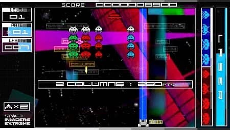 Набор заветных очков целиком подчиняется местной системе правил, хитрости которой разгадать очень непросто. Непонятные шкалы, насыщенность музыкального фона, ловкое уничтожение захватчиков – каждое действие вносит свой вклад в заветную копилку. Уничтожите четырёх пришельцев одного цвета подряд – получите спецоружие. Аккуратно вырежете столбец из вражеского построения – держите поощрение. Подстрелите разноцветную летающую тарелку – запустите мини-игру, победа в которой запустит счётчик очков в поднебесье. Это элементарные навыки, а ведь есть правила и посложнее. Следить за всем этим безобразием не возбраняется, однако в хаосе разноцветных сражений подобные наблюдения кажутся излишними.