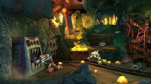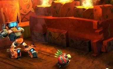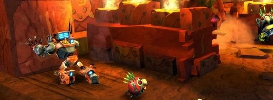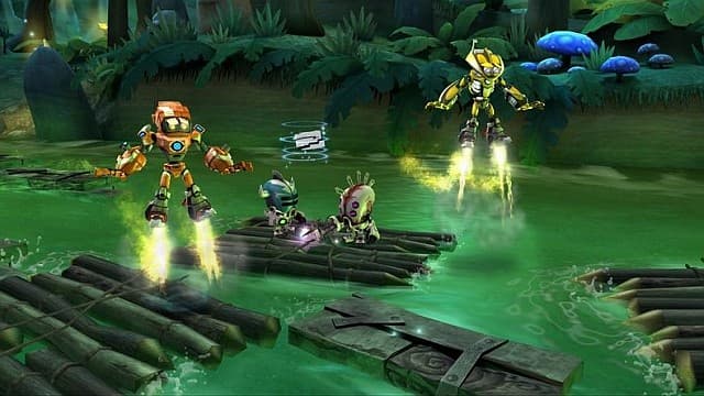 И всё бы ничего, но роботам ставит палки в подшипники местный злодей, обладающий отдалённым сходством с Дартом Вейдером - Лорд Крунг (Lord Krung), который хочет завладеть высокотехнологичным космическим кораблём. Для таких целей у него есть всяко-разные механические слуги, которых мазутом не корми, а дай напакостить героям.У нас есть целый мир с джунглями, храмами и пещерами. Путешествуя по нему, нужно решать несложные головоломки, построенные на взаимодействии героев не только с окружающим миром, но и взаимовыручке. Ведь у нас здесь 3D-платформер, поддерживающий кооперативное прохождение! Также есть возможность выбивать из врагов и декораций валюту, которую инвестируем в развитие робототехники (то бишь, в своего персонажа). Вот и весь короткий список достоинств игры.