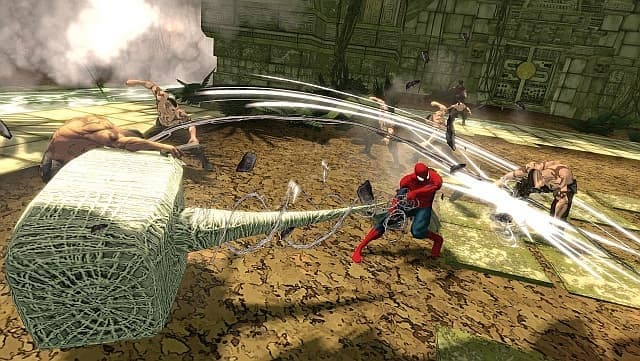 Никто не запрещает применять в бою и хитрости. Прыгать неприятелям за шиворот, уворачиваться от лёгких ударов, кувыркаться и опутывать паутиной. А паучье чутьё всегда предупредит о надвигающейся угрозе. Драки получились в меру быстрыми, достаточно сложными и прекрасно отражающими стиль каждого из представленных участников.Не подвела и система покупки новых навыков. В каждом уровне есть набор испытаний. Там могут быть и обязательные поручения, и нестандартные условия (убить столько-то гадов за отведенное время, собрать все раскиданные по уровню эмблемы паука, найти все секреты и т.д.). За выполнение этих задач вручают опыт, который можно потратить на приобретении комбо-атак, специальных приёмов, увеличение запаса жизненной энергии и даже альтернативный костюм. Чем больше вы выполнили таких испытаний, тем шире список доступных «товаров».Кроме общих методов достижения цели у персонажей разных миров есть и свои особенности. Amazing, Ultimate и 2099 больше всего походят на привычные боевики про знаменитого героя в цветастом трико: много времени проводят в воздухе и открытых сражениях. В Noir условия немного другие. Там Человек-паук не может в открытую биться с гангстерами с огнестрельным оружием. Его быстро превратят в решето. Поэтому он вынужден прятаться в тени и устранять их без шума. Для этого он и активно применяет свою паутину: подвешивает бандитов под потолок, приклеивает к стене, превращает их в подобие мумий.