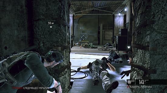 В большинстве случаев особого выбора у героя нет, и открытый вооружённый конфликт неизбежен. То помещение от недружелюбных элементов зачистить, то необходимо защищать позицию от выбегающих неприятелей. Обходные пути редко выходят за рамки нескольких дверей в одной длинной комнате да парочки окон. А то и вовсе ставят героя в длинный, узкий коридор и просят протопать добрый километр, оставляя за собой горы бездыханных тел.Впрочем, полностью выбрасывать «тихие» отрезки из игры студия Ubisoft Montreal не отважилась. Иногда герою запрещают идти напролом, и он вынужден вспоминать былые навыки. Тут уж и от пристального взора камер надо прятаться, и свет по возможности выключать. Конечно, такие вставки не идут ни в какое сравнение с прошлыми частями. Дошло до того, что обходные пути и объекты, которые можно уронить кому-нибудь на голову, сами подсвечиваются в темноте. Перекос в сторону стрельбы можно было бы понять и простить, если бы не одно «но» - поведение врагов. К примеру, Сэм снял часового, и бездыханное тело обнаружил товарищ. Он с дикими воплями подбежит к трупу и тут же получит свою порцию свинца. Вскоре такая судьба постигнет и третьего. И четвертого. И сколько их там еще останется. Вообще недруги, когда не видят Фишера, работают по принципу «больше слов, меньше дела». Они бесцельно, по одному слоняются по округе и безостановочно выкрикивают проклятия. Если агента заметят, то на экране возникает его силуэт, так называемая «последняя известная позиция». В этом случае болванчики начинают либо палить в ту сторону, либо мчаться к очертанию. Применять эту функцию можно сколько угодно раз, дабы беспрепятственно обходить с флангов, забираться в тыл и расправляться с беспомощными статистами.Однако недруги давят числом. И тут понимаешь, что бесконечный боезапас к пистолету - это вовсе не просчёт разработчиков, а суровая необходимость, поскольку под конец игры создается ощущение, что изничтожил половину личного состава армии США.