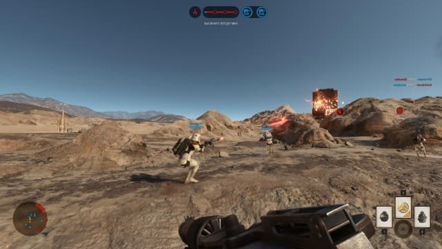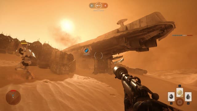 Из-за примитивной системы создания игрового класса бои в Star Wars: Battlefront идентичны друг другу. Толпы с разных сторон обмениваются гранатами и лазерными лучами. Какое-то разнообразие привносят лишь бонусы, разбросанные на аренах. Подхватив пиктограмму, становишься обладателем мины, автоматической турели или ракетомета. На больших картах позволяют стать пилотом легендарной «звездно-военной» техники, вот только управление ею настолько тугое и неотзывчивое, что радость от пребывания в кабине AT-ST испаряется через несколько секунд. Да и неуютно в чистом поле под прицелом десятка гранатометов.