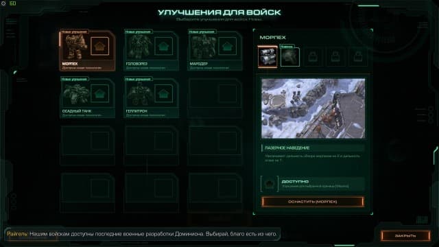 - Выбор способностей Новы и ее армии в начале миссии