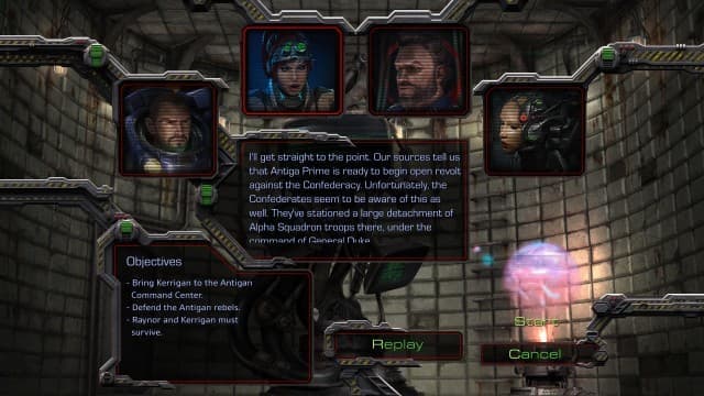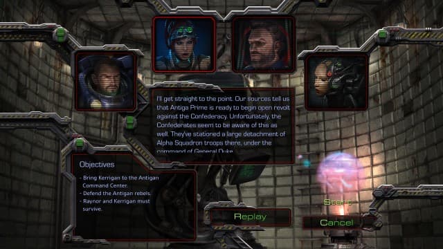 Несмотря на то, что весь сюжет подаётся в виде диалогов «говорящих голов», это работает даже сильнее постановочных роликов из StarCraft 2. Просто из-за того, что «самый мощный графический процессор» додумывает происходящее и ты реально переживаешь за судьбу Керриган, Рейнора и Зератула, проникаешься ненавистью к Менгску и испытываешь ужас при виде разрушительного нашествия зергов на цветущую планету. Несмотря на то, что CG-ролики создавались в 90-е, благодаря мастерской постановке, звуковому и музыкальному сопровождению, они цепляют и сегодня. Тем более Blizzard слегка дополнила кампанию картинками, иллюстрирующими происходящие события.