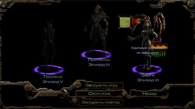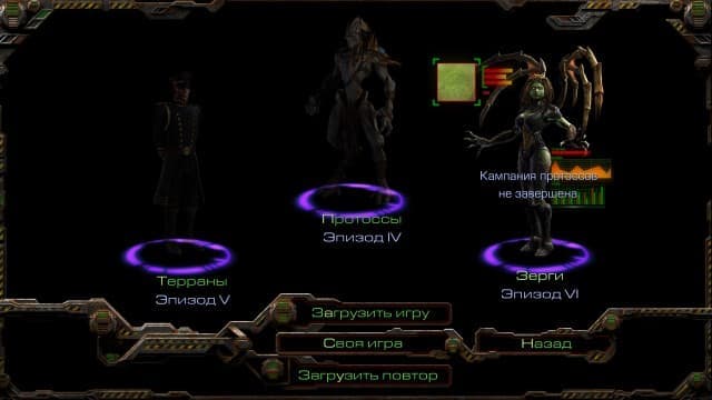 Помимо онлайнового мультиплеера, где можно создавать матчи с собственными правилами или участвовать в рейтинговых битвах, StarCraft: Remastered способен вас развлекать на протяжении десятков часов, поскольку в нём есть аж шесть кампаний, связанных в единую сюжетную линию. Три из StarCraft за каждую расу и ещё три из вышедшего в том же 1998 году Brood War.