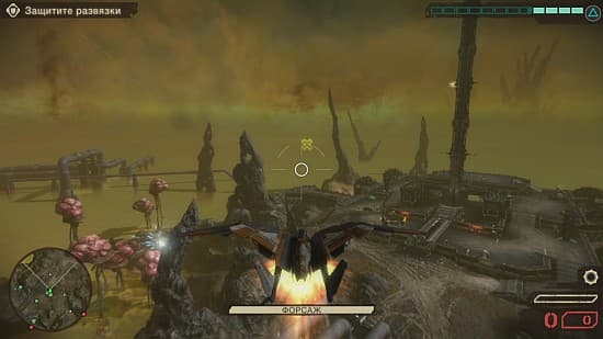 С другой стороны, таким образом мы знакомимся с уникальной игровой механикой. Верный помощник Эммета, обитающий на космическом корабле, сбрасывает на поверхность планеты всевозможные постройки. Герою достаточно выбрать нужное здание и место, куда приземлится посылка. На пустыре в мгновение ока вырастают склады с оружием, стены, турели, снайперские вышки и заводы по производству машин смерти. Десять миссий постепенно представляют разновидности строений, особенности их применения и заодно позволяют освоиться с управлением как наземной, так и воздушной техники. Отдельные операции посвящены конкретному транспортному средству, другие - созданию базы. Но сюжетная кампания больше походит на затянутую и скучную тренировку. Враги, следуя модели поведения безмозглых тварей, предпочитают стоять на расстоянии, на передвижения или манёвры не способны. С продвижением вперёд увеличивается лишь число супостатов и продолжительность не самых веселых перестрелок. Герой зачищает территорию, потом ее обороняет, и такое развитие событие повторяется слишком часто.