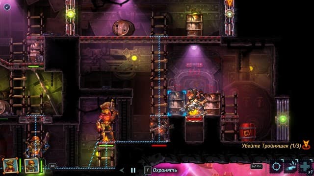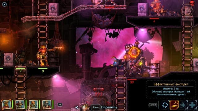 А вот разновидностей миссии в SteamWorld Heist маловато. Нужно уничтожить противников в округе, взорвать указанную цель, продержаться определенное количество ходов или собрать добычу. Для пошаговой тактики это объяснимое и нормальное явление. Так или иначе, каждый бой ждешь с нетерпением и нервничаешь. Но предсказуемость отражается на проекте не лучшим образом.