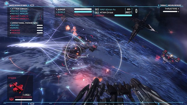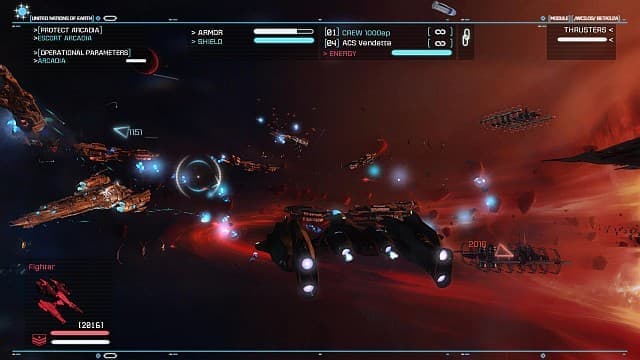 Проект подкупает масштабом происходящего. В смертельной схватке сходятся огромные крейсеры, в атаку мчатся вооружённые торпедами корветы. Из гиперпространства выпрыгивают авианосцы с внушительной группой поддержки. Во все стороны летят снаряды, корабли разваливаются на куски. Адамс лавирует в потоках плазмы, активирует специальные устройства для уклонения от ракет и превращает врагов в груды космического мусора.