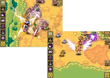 По такому случаю управление – жизненно важный компонент удобства – было отточено до предела. Это было несложно: достаточно обучить героев беспрекословно подчиняться стилусу. На радость магам здесь имеется аналог правой кнопки мыши - две панели быстрого доступа. Их можно под завязку набить болезненными фокусами. К счастью, рабочую область они заслоняют некритично – россыпь вражеских смертей вы уж точно не пропустите. Да и на милую графику полюбуетесь – ничего особенного, но глаза раздражать спрайты уж точно не будут. Правда, выглядят они не очень уж серьёзно. Скорее – мило, как, впрочем, любой объект в Summon Night.