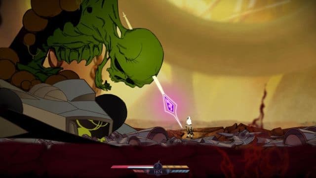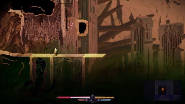 Огромная часть Sundered — это сражения. Количество приёмов по мере прохождения будет увеличиваться, появятся новые атаки ближнего боя, пушка, увеличится количество уклонений. Постепенно героиня превратится в ловкую бестию, способную не только сдерживать натиск неприятелей, но и давать достойный отпор. Управление удобное и приятное, но не стоит играть на клавиатуре. Лучше взять в руки геймпад.