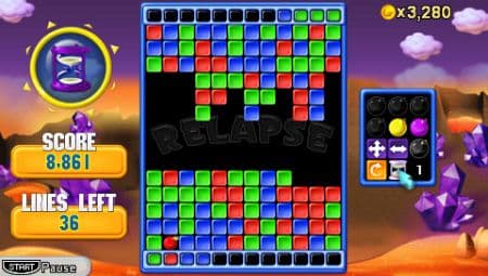 Первая называется «Relapse» и представляет собой вариацию, в которой строчки заполняются одновременно и сверху и снизу стакана. В данном случае приходится постоянно метаться между двумя «фронтами» и следить за тем, чтобы верхние и нижние кубики не соединились друг с другом. В редких случаях выпадает специальный бонус, позволяющий «осыпать» массив с одной стороны на противоположную. В целом данный режим характеризуется большей нервозностью прохождения, чем классический, и требует от игрока зрительной внимательности.