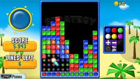 Второй режим – «Strategy». Здесь отсутствует ограничение по времени действия, поэтому игрок волен обдумывать каждый свой шаг столько, сколько ему заблагорассудится. Однако, каждый его результативный «клик» автоматически поднимает общий массив на одну строчку. Поэтому ориентация изначально берется на удаление максимально больших блоков, состоящих из десятков кубиков одного цвета. Название режима говорит само за себя – тут нужно планировать свои действия на несколько ходов вперед. Требует от игрока повышенной сосредоточенности.\\
