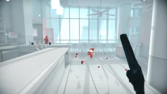Сделать все это в реальном времени — невыполнимая задача. Оттого проект напоминает скорее логическую игру, нежели скоростной шутер. Представители этого жанра вынуждают доводить до автоматизма рефлексы и действовать молниеносно, не задумываясь. В Superhot, напротив, попытки сделать все на скорости и полагаться исключительно на реакцию обречены на провал. Во главу угла поставлен холодный расчет, необходимость сначала думать, а потом претворять планы в жизнь.