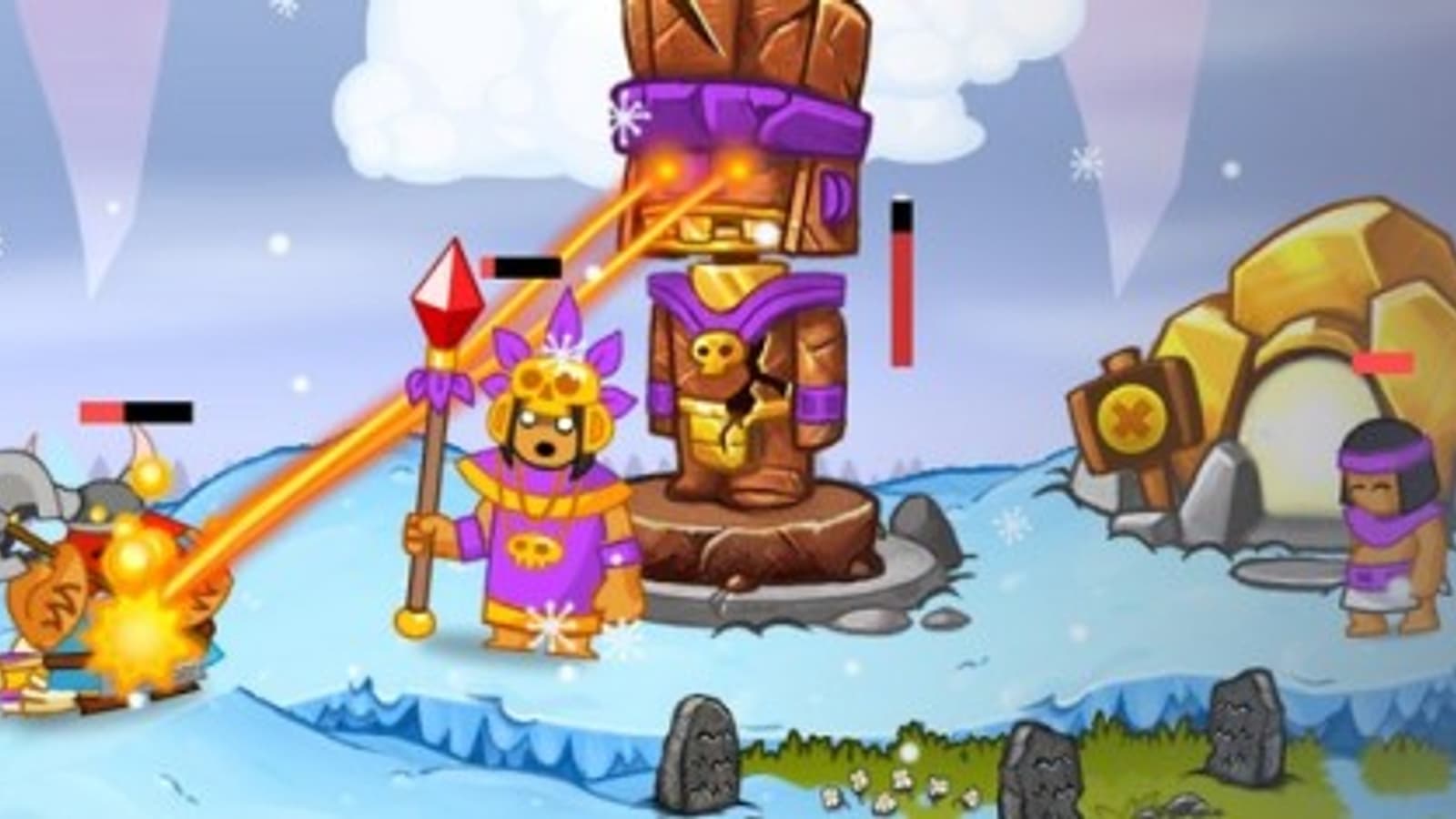 Справа стоит вражеская база. Слева - наша родимая. Крестьяне самостоятельно таскают злато из ближних шахт. Строить ничего, кроме оборонительных башенок в заранее обозначенных местах, нельзя. Кем-то управлять - тоже. Зато можно заказывать изучение заклинаний и войска, которые сначала жиденьким, а потом мощным потоком устремляются в направлении неприятеля, чтобы пару раз махнуть топором, сдохнуть и уступить место собратьям.В помощь солдатам имеется магия, которую мудрый правитель использует себе во вред, врагам во благо. Лучше, конечно, наоборот. Но если не научиться применять фокусы где надо и когда надо, неприятельские войска через минуту станут барабанить топорами в стены родной крепости, требуя предводителя на мыло и прочие хозяйственные нужды.Допустим, заморозили вы их, потратили ману. А толку, если некому расколоть застывшие ненадолго статуи, только подкрепление к ним за это время подтянется? Или решили поймать одного в клетку. А следующий солдафон тюкнул мечом, освободил собрата и пошли они дальше. Вдвоем. А тут количество имеет значение. Чем гуще строй, тем мощнее удар. Но и уязвимость для таких занимательных напастей, как огненный дождь и отравленное облако, увеличивается.