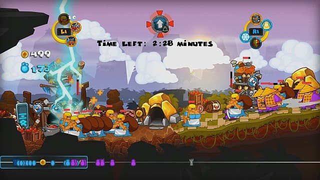 Оставшиеся три режима - это мини-игры, в основу которых легли некоторые миссии из кампании. Тут и простое выживание от орд атакующих варваров, и сопровождение одинокого викинга с поддержкой самых разных магических фокусов, и скоротечный аттракцион, в котором надо катящимся валуном раздавить всех врагов, и при этом постараться не расплющить собственных солдат. Онлайновая таблица лидеров стимулирует сделать как минимум несколько попыток в каждой.Самым привлекательным в этой истинно консольной стратегии, появившейся в прошлом году на Wii в сервисе WiiWare, стало управление. Вимот (Wii) и Move (PS3) успешно справляются с ролью компьютерной мышки, оперативно управляют мелькающим по экрану курсором, заказывают войска и вызывают громы и молнии точно на вражеские головы. На PC по понятной причине подобный подход воспринимается само собой разумеющимся. На PS3 имеется также опциональная поддержка DualShock 3, заставляющая использовать много разных кнопок. Довольно удобная, но, как говорится, не то.