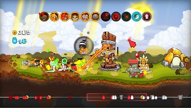 Вот и из Swords & Soldiers такая же стратегия, как из ефрейтора генерал. DOTA это, только необыкновенная. Переиначенная и скалкой укатанная в двухмерное измерение. Вроде бы простая, зато быстрая и веселая, как потасовка карапузов в песочнице: «Я тя забодаю», «Нет, я тя забодаю!». Хотя в мультиплеере процесс больше напоминает канонических баранов на мосту.