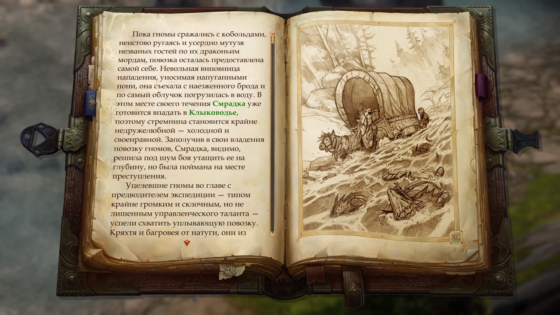 Важные события подаются в виде книги, которую пишет один из спутников вашего персонажа – Линдзи. Они служат проверкой навыка, в них участвует вся партия, а от успеха или провала зависит дальнейшее развитие сюжета и некоторых игровых моментов. Это и привлекает в Pathfinder: Kingmaker – геймплей крепко связан с историей.