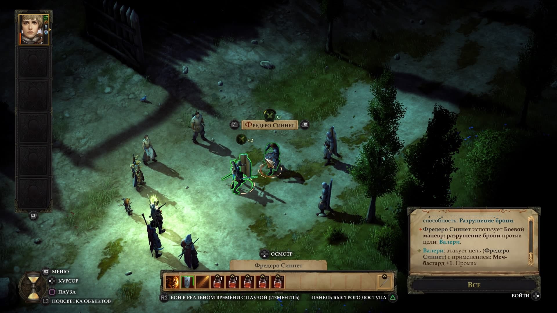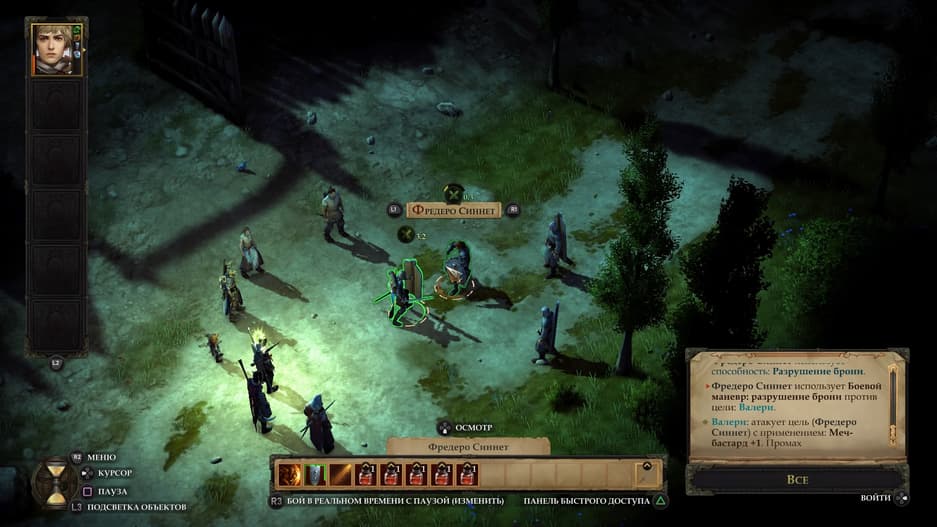Контролировать партию во время боя с паузой неудобно. Постоянно переключаться между всеми доступными сопартийцами не вариант – быстрой смены персонажей нет, а открытие специального меню, где можно выбрать нужного сопартийца, просто губит всю динамику. В итоге весь бой сводится к судорожному переключению от союзника к союзнику и наблюдению за меню. Можно включить искусственный интеллект, который будет сам управлять партией, однако его нужно предварительно настраивать в отдельном меню.
