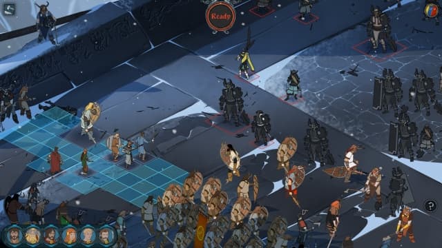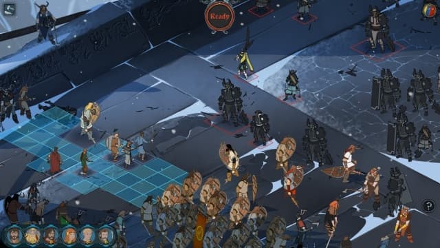 Напряженный сюжет является не единственным достоинством The Banner Saga. Часто разговорами не удается урегулировать конфликт, и действие переносится по поле боя. На первый взгляд, все привычно. Плоская карта разбита на квадраты, по которым поочередно ходят воины и обмениваются ударами. Если перед сражением вас уверяют, что «сотни бойцов ринулись друг на друга», не верьте. Хозяин каравана выставляет на передовую только шесть своих лучших воинов — героев.