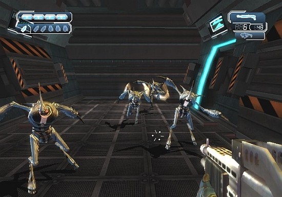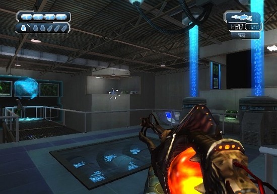 18 видов оружия разведены по трем категориям, согласно происхождению. Инопланетная раса друджей (Drudge) свои экземпляры выращивает, поэтому всё – от пистолета до пушки – представляют собой живую плоть. Морпехи и агенты притащили с собой стандартный «джентльменский набор»: от пистолета-пулемета и винтовки до помпового ружья и гранатомета. Третий участник конфликта – организация Trust – выкатила из секретных лабораторий контейнеры с импульсным оружием, прототипы мощнейших боевых лазеров и улучшенные модификации чужих пушек.Под рукой у героя не только ружья и автоматы, но и специальное устройство – «Всевидящее Око» (All-Seeing Eye). Сей гаджет отвечает за разминирование, подсказку нужного маршрута, поиск секретов и скрытых объектов, копирование информации, взлом электронной защиты как земного, так и инопланетного происхождения. Необходимость такого устройства бесспорна, но увлекательность мини-игр с его участием под большим вопросом. Как только поблизости появляется объект, на который стоит бросить электронный взгляд, вимот начинает вибрировать и подавать резкий звуковой сигнал. После локализации цели остается лишь задержать палец на спусковом крючке – пока шарик не сломает замок или не накачает информации. Все. Повторять до конца игры.Может быть, приз за лучшую графику вдохновил разработчиков на трудовой подвиг? Скорее, заставил их все бросить на полдороге. Небольшие локации коридорного типа завалены малопривлекательными объектами. Взорвать или расстрелять мебельный хлам нельзя. Здесь редкое окно разбить разрешают и не на каждом предмете входное отверстие от пули нарисуют. Хотя технологически движок позволяет разрушать декорации, на практике этого воплотить не удалось, игроку на заклание дают всего пять-шесть ненужных коробок. Оказалось сложным представить в выгодном ракурсе и целый ряд приятных спецэффектов. Игрок не замечает ни теней, ни преломления света, ни отражений, ни рельефных поверхностей. В глаза бросается только замыливание картинки при перезарядке оружия.