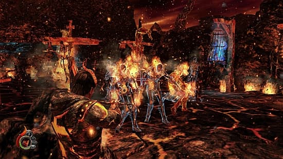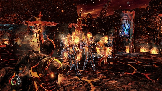 С оружием связана одна особенность. Дело в том, что оно имеет свойство изнашиваться и ломаться со временем. Приходится постоянно менять мечи и пользоваться трофейными клинками. На первый взгляд такая идея не может не радовать. Вот Денз размахивает огромным двурушником, в следующее мгновение он уже орудует двумя мечами, потом в его руках оказывается топор, а под конец можно и на копьё пару тушек насадить. Для каждого оружия предусмотрено своё добивание.Страшное проклятие хоть и сулит муки в загробном мире, в жизни повседневной весьма полезно. Накопив определённый запас «гнева», герои превращаются в рогатых демонов, всё вокруг погружается в адское пламя, а враги принимают форму скелетов. Расправляться с угрозами в таком режиме куда проще. В процессе прохождения героям становятся доступны новые демонические таланты, вроде умения ломать стены в определенным местах, сжигать преграды и оказывать помощь павшему товарищу.Но в кроваво-демоническую симфонию вмешивается странные особенности системы развития. У каждого оружия есть свой набор комбинаций, который нужно ещё разблокировать. Связки «топор и булава» и «два топора» имеют совершенно разные ветки развития. За прохождение уровня и поиск секретов героям выдают опыт, за который прокачиваются эти способности.Разумеется, все выучить не удаётся, оружие ломается довольно быстро. Чем пользуется герой, часто диктует ситуация, а не его личные предпочтения. В результате в пылу сражения может случиться так, что в его распоряжении окажется какая-нибудь секира, с которой он совершенно не умеют обращаться. Вторая часть развития более традиционна и включает в себя увеличение силы, здоровья, брони и тому подобные бонусы.