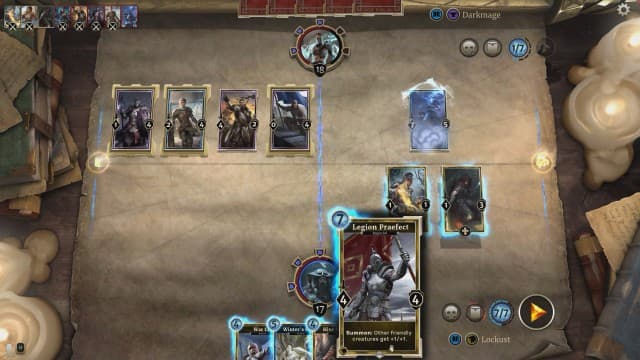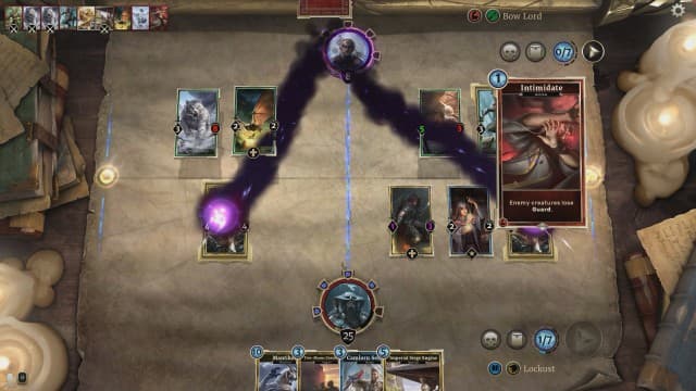 Помимо «Истории» игра предлагает сражения на «Аренах» против ИИ. В этом режиме надо составить колоду из 30 случайных карт, выбирая их последовательно раз за разом из трех вариантов (знакомо по Hearthstone, да?). Здесь надо победить 9 противников, включая финального босса. Причем в этом режиме к линиям могут привязываться разные правила, а босс получает серьезное преимущество. На прохождение «Арены» дается три попытки. Чем больше продержишься, тем выше награда.