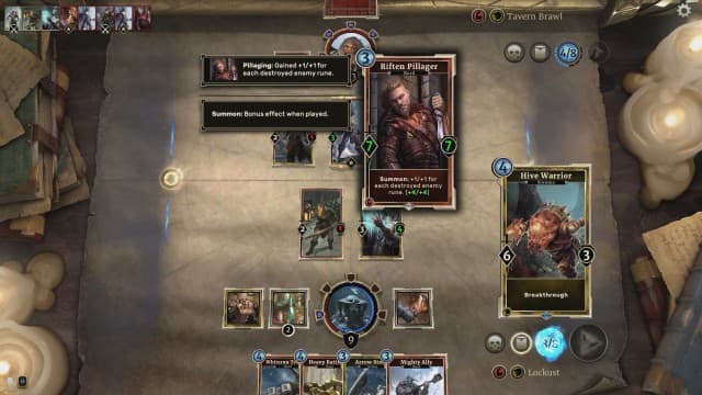 Изюминкой сражения являются, конечно же, карты со свойством «Пророчество», которые играются моментально после потери руны, во время хода противника.